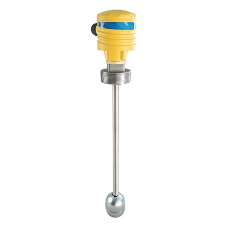 The LVR500 Series float level transmitter provides continuous level measurement up to 2 m (6.5') with a 4 to 20 mA signal output, and is factory configured to your selected dimension. This stainless steel liquid level sensor is well suited for high temperature or pressure tank level applications with relatively clean liquids such as water, diluted chemicals and light weight oils. Typical application examples include boilers and process vessels.