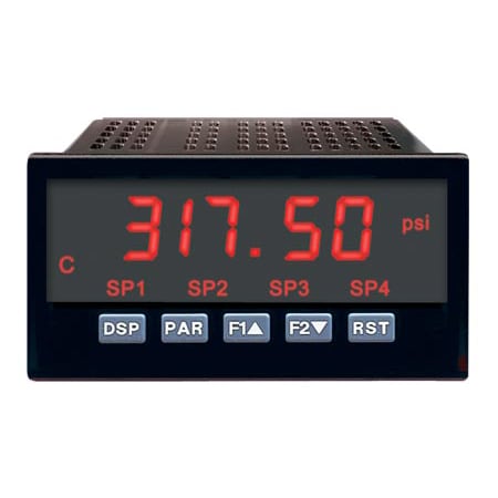 The meters have 4 setpoint outputs, implemented on plug-in option cards. The plug-in cards provide dual form “C” relays (5 A), quad form “A” (3 A), or either quadsinking or quad-sourcing open collector logic outputs. The setpoint alarms can be configured to suit a variety of control and alarm requirements. Communication and bus capabilities are also available as option cards. These include RS232, RS485, and MODBUS.
