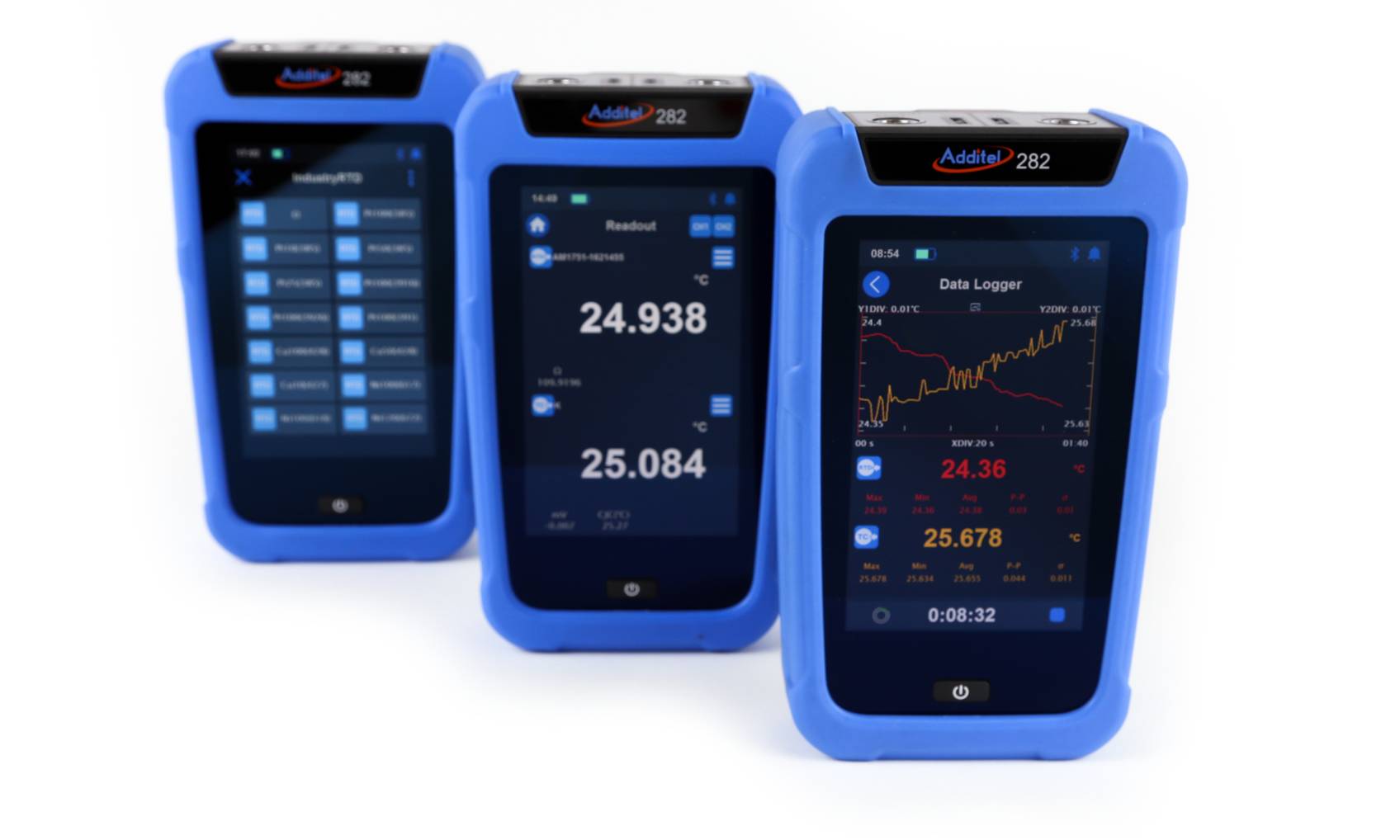 Additel’s 282 Reference Thermometer Readout delivers the best possible accuracies and features in the palm of your hand! With accuracy capabilities on par with laboratory grade thermometers, the ADT282 is capable of handling even your most critical measurements. This ultra-high precision readout features dual analog channels designed to facilitate comparison measurements and meet all of your temperature measurement needs. The easy to use touchscreen makes navigating the well-designed menus a time saving and enjoyable experience. The Lemo style smart connectors help to ensure that your probe calibration information is never in question. The ADT282 Reference Thermometer Readout helps makes metrology simple and will quickly become your new go-to when reliable temperature measurements are a must.