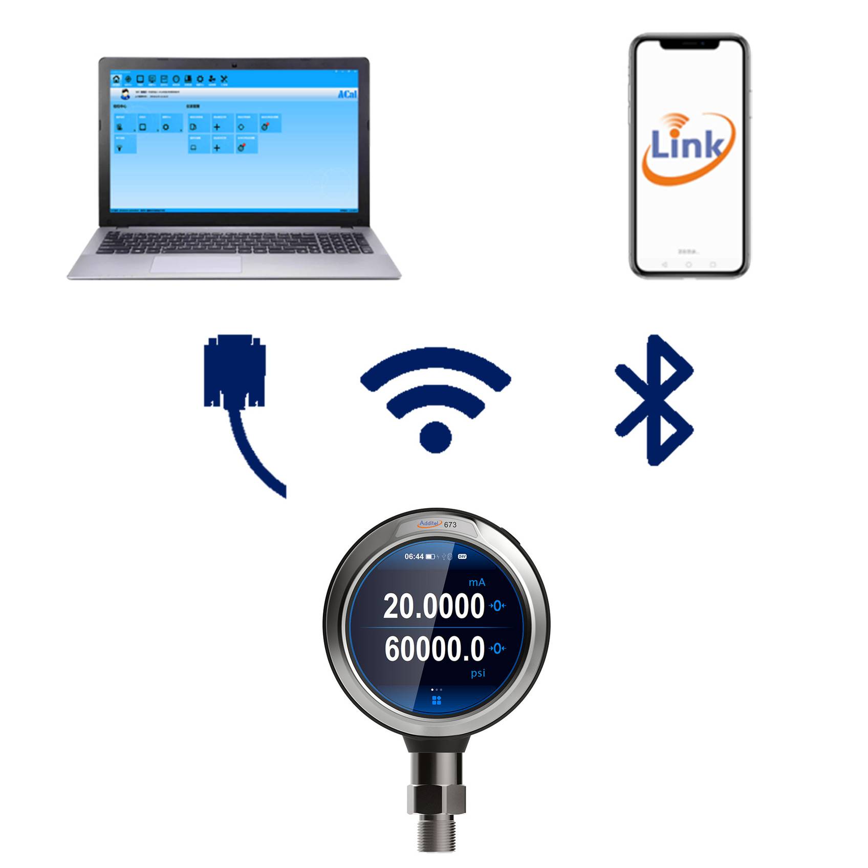 Additel's 673 Advanced Digital Pressure Calibrators will redefine the way you want to measure and calibrate pressure readings and devices! With wireless remote connectivity, microprocessor technology, state of-the-art silicon pressure sensors and onboard storage capacity, these attractive and fully temperature compensated calibrators will provide the performance, durability and reliability you’ve come to expect from genuine Additel products. The all new modern menu structure and control interface brings a new and refreshing experience to pressure calibration work. This completely new way of interfacing with our pressure calibrators makes the ADT673 a real pleasure to use. The handy Additel Link app gives users the ability to remotely monitor these calibrators from the convenience of a personal device or cell phone. With an abundance of options to choose from, you can configure these pressure calibrators to precisely fit your specific pressure calibration and measurement needs. With an IP67 rating, you will find that these amazing pressure calibrators can be used in the field or laboratory to meet the most demanding pressure calibration needs.