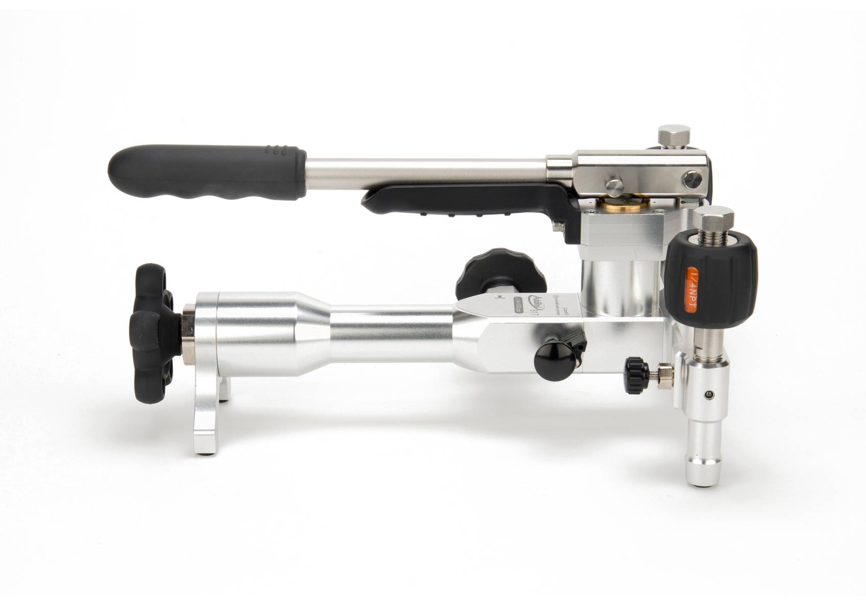 The 917 Pneumatic Pressure Test Pump is a hand operated pressure pump designed to generate pressure from 95% vacuum to 1,000psi (70bar). A high-quality screw press is designed for fine pressure adjustment, with an adjustment resolution up to 10 Pa (0.1 mbar). A specially designed shut-off valve makes the pressure as stable as possible during calibration. A built-in gas-liquid isolator protects the pump from moisture and dirt to reduce the need for maintenance. Two hand-tight quick connectors installed on the pump allow easy connecting and disconnecting to the test pump without the need for PTFE tape or wrenches. The 917 is an ideal comparison test pump for pressure instruments calibration.