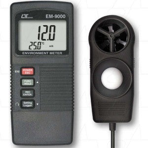 The EM9000 Environment Meter is a versatile instrument that measures temperature, humidity, light, and sound levels. Its compact design and easy-to-read display make it ideal for field inspections, environmental monitoring, and research applications.