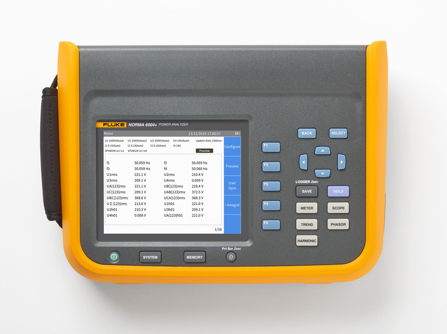The Fluke Norma 6000 Series Portable Wideband Precision Power Analysers give you more freedom than ever before to make high accuracy power measurements wherever you need to—whether in the lab, or in the field. Designed for portability the lightweight, battery powered Fluke 6000 Series eliminates the need to carry large, fragile, expensive analysers into the field, allowing you to make measurements directly at the load in nearly any environment. By measuring directly at the load, you can discover how the equipment operates under real-world conditions, with real-world variables, not just at a test bench or in the lab.