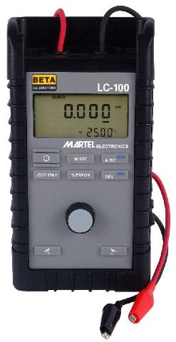 The Martel Electronics LC-100 Precision Loop Calibrator provides significantly extended performance when compared to any competitive calibrator. With an accuracy of 0.015% of reading, with 0.001 mA resolution, the LC-100 has the highest accuracy in its class. Unique features, such as a “% Error” function, which eliminates manual error calculation and allows the display of the actual versus ideal error at any calibration point, put the LC-100 way beyond similar instruments. The Martel LC-100 can simulate, power, and measure two-wire transmitters. With automatic Step and Ramp functions, the LC-100 enables remote calibration of 4-20mA devices.