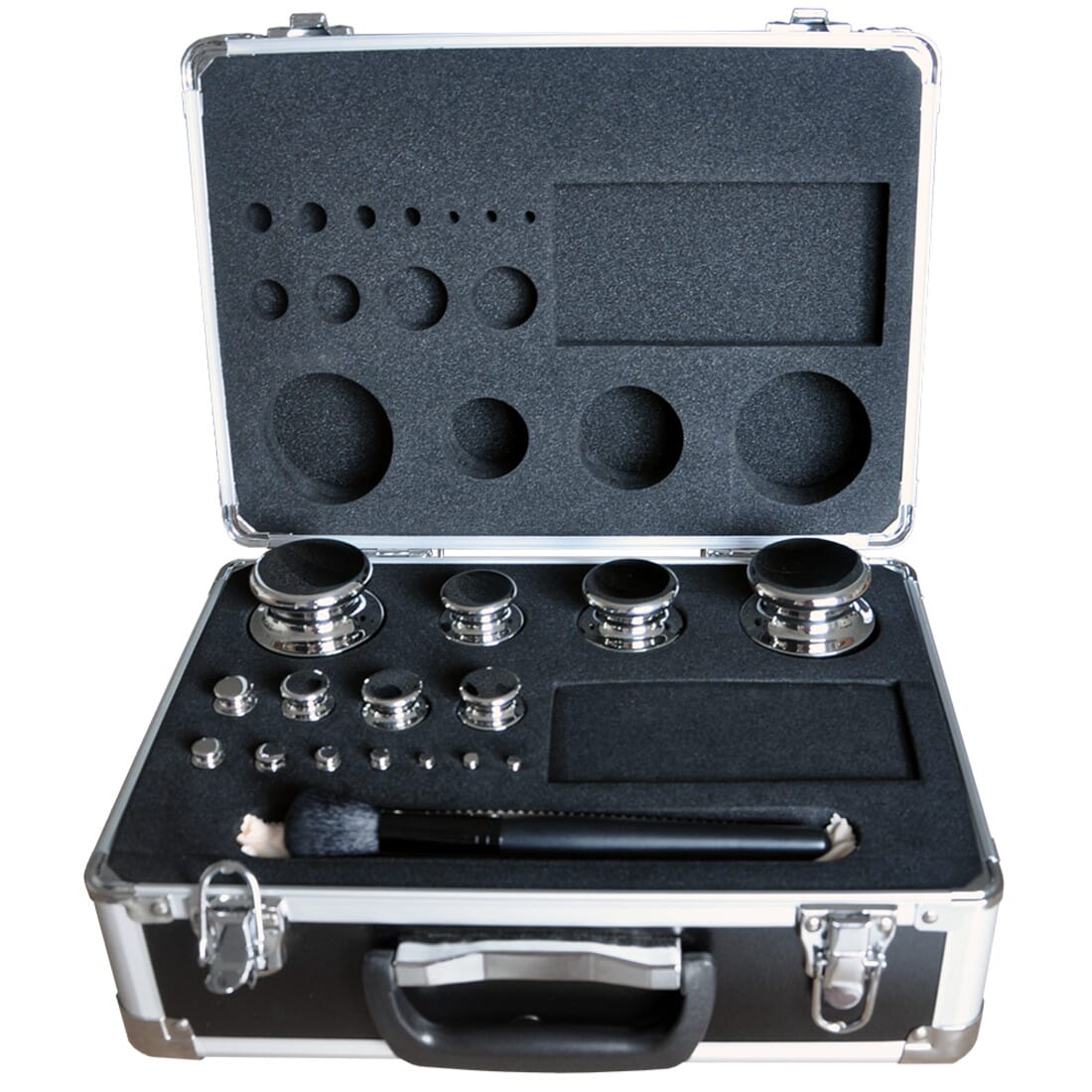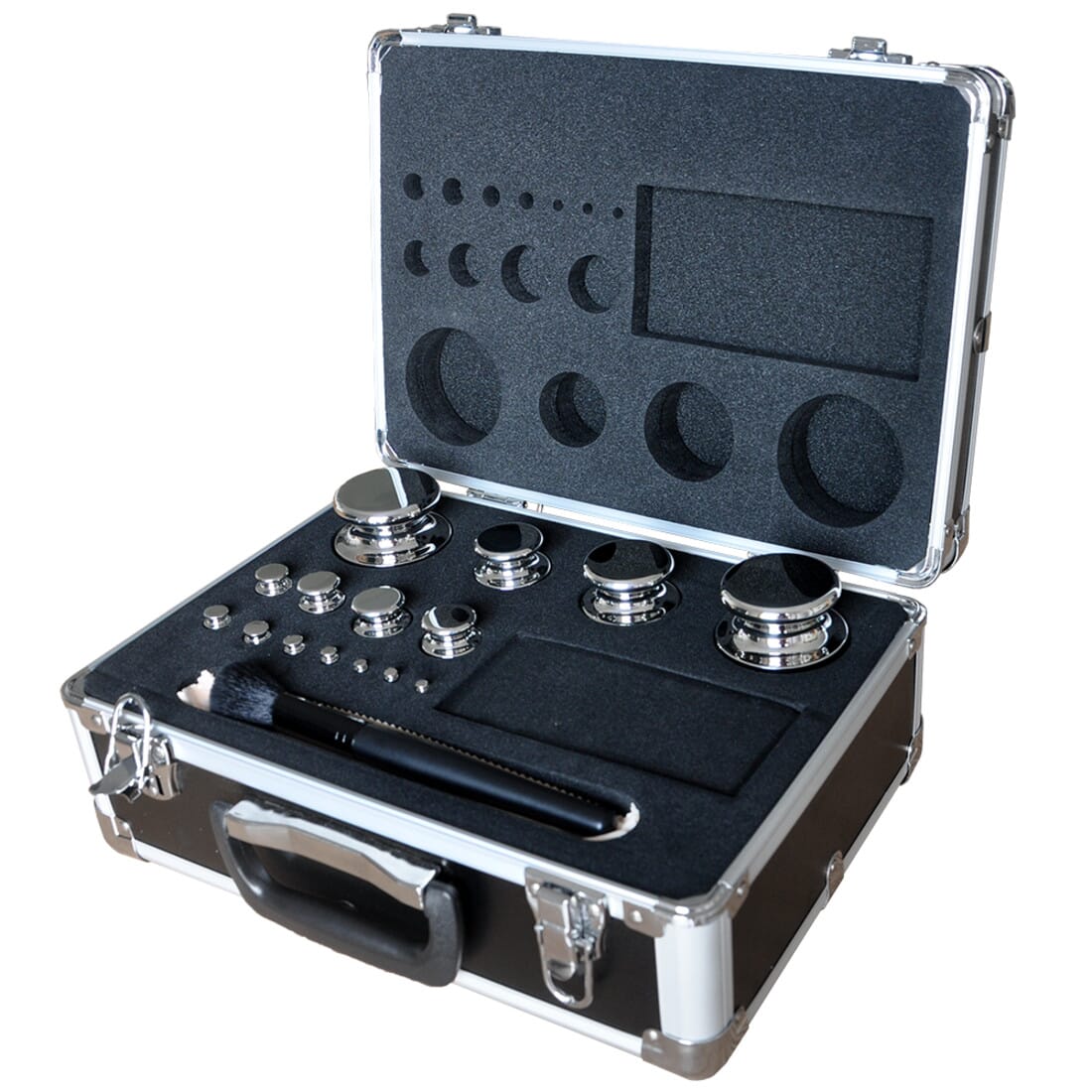 OIML weight sets are a complete set of test weight that can meet the requirements for testing to OIML standards. E2 weights offer the highest accuracy ideal for analytical and precision balances, M1 weights offer the lowest accuracy but are more affordable and are ideal for lower cost items such as compact balances and bench scales.