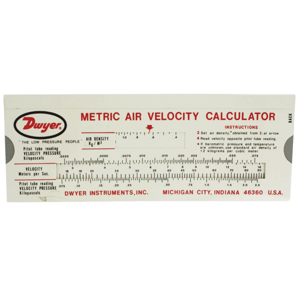 Read the red figures directly in feet per minute of velocity - from 400 to 10,000 fpm No conversion tables needed for air at standard conditions. Read the black figures in inches of water column air pressure - from 0 to 10" w.c.