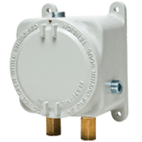 Our most popular Differential Pressure Switch is now available in a flame-proof ATEX approved package in the SERIES AT11910. This pressure switch combines advanced design and precision construction to make these switches able to perform many of the tasks of larger, costlier units. For air and non-combustible compatible gases, the AT11910 Series switches have set points from 0.07 to 20 in w.c. (1.8 to 508 mm). Set point adjustment is easy with range screw located inside the switch enclosure. Series AT11910 ATEX enclosures are available in aluminum enclosures and ideal for low pressure, hazardous area applications.