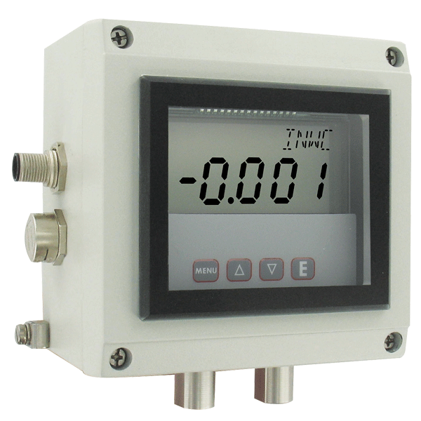 The SERIES ISDP Differential Pressure Transmitter provides a 4-20 mA process output, a robust NEMA 4X enclosure, plus a large LCD display that can be programmed to read in pressure, velocity or flow. The ISDP offers simplified programming via a Menu key that enables the user to select: security level; English or Metric engineering units; pressure, velocity or flow operation, K-factor for use with various Pitot tubes and flow sensors, circular or rectangular duct size for volumetric flow operation plus many more. The Series ISDP Differential Pressure Transmitter is powered on its two wire loop with 10-35 VDC via its integral M-12 four pin male connector. The ISDP provides a 0.5% full scale accuracy on ranges from 0.25" w.c. to 100" w.c. as well as bi-directional models up to 10" w.c. These features make the Series ISDP Differential Pressure Transmitter the ideal instrument for monitoring pressures or air flows in hazardous zones having a Class I Div. I Groups A, B, C, D; Class II Div. I Groups E, F, G; Class III Div. I ratings.