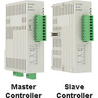 The DIN Rail Mount SERIES SCD offers multiple PID loops in a compact size. Each SCD-1000 master controller can be combined with up to seven SCD-2000 slave controllers without any wires. Each controller has one universal input, one relay output and one user selected output. The outputs can be used for a dual loop to control heating and cooling or a single loop with an alarm. These controllers support up to 64 ramp/soak actions. The SCD series controllers are programmed via a user-friendly software program via the RS-485 Modbus® communications.